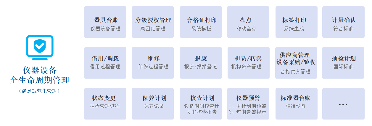 實現儀器設備全生命周期管理,符合國家CNAS/17025管理要求,使儀器設備在計量管理方面進行符合計量規范、科學化管理,最大化發揮設備的價值,提高儀器設備的經濟效益和使用效率。