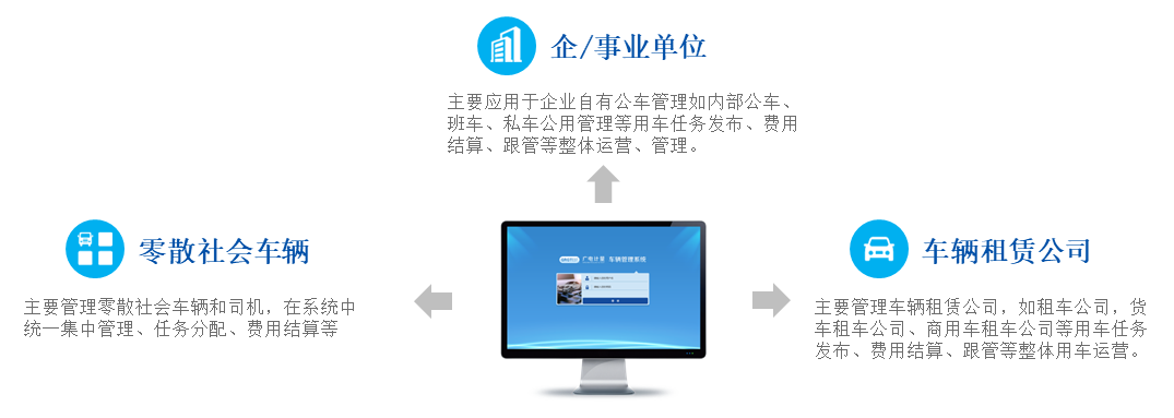 實現用車管理規范化、信息化、智能化,達到陽光用車,降低車輛管理成本的目標,為企業公務車輛、委外車輛、私車公用三類用車管理模式提供信息化解決方案,解決車輛管理難題。