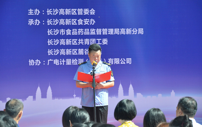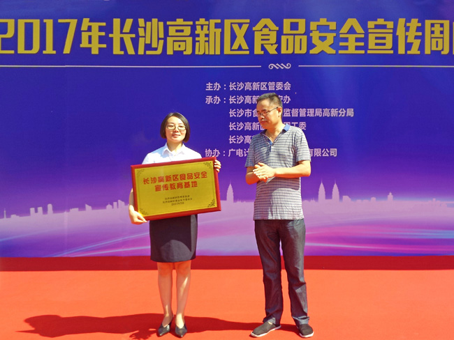 7月6日,2017年長沙高新區(qū)食品安全宣傳周暨長沙高新區(qū)食品安全宣傳教育基地授牌儀式,在高新區(qū)廣電計量大廈廣場前隆重舉行,來自長沙高新區(qū)管委會、長沙市食藥監(jiān)局、長沙高新區(qū)食安辦、長沙市食藥監(jiān)局高新分局、長沙高新區(qū)共青團工委、麓谷街道等相關(guān)政府領(lǐng)導(dǎo),攜食品行業(yè)代表及食品安全志愿者、周邊街道群眾逾300人,共同見證長沙高新區(qū)食品安全宣傳教育基地落戶廣電計量。
