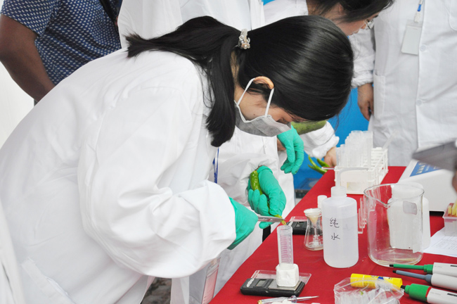 當(dāng)天的活動現(xiàn)場設(shè)置企業(yè)展示、食品快速檢測服務(wù)體驗、食藥真假辨別、長沙創(chuàng)建全國食品安全示范城市成果展覽四大專區(qū)。其中,食品快速檢測服務(wù)體驗區(qū)由廣電計量現(xiàn)場配備快檢設(shè)備和專業(yè)技術(shù)人員,為當(dāng)?shù)鼐用裉峁┦卟恕⑷狻⑺热粘J称返默F(xiàn)場快檢服務(wù),以專業(yè)技術(shù)和數(shù)據(jù)幫助公眾擊破各類食品謠言,樹立正確的食品認(rèn)知。聽說只需十幾分鐘就可以知道食物否含有農(nóng)藥殘留、瘦肉精等有害物質(zhì),市民們紛紛拎著自家剛買的肉蔬品排隊等待檢測。