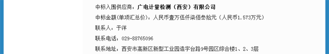 1月2日,陜西省政府采購(gòu)網(wǎng)發(fā)布公告,廣電計(jì)量西安子公司成功中標(biāo)西安市灞橋區(qū)食品藥品監(jiān)督管理局抽檢檢測(cè)服務(wù)檢測(cè)機(jī)構(gòu)入圍項(xiàng)目,服務(wù)期限2018-2019年度,斬獲廣電計(jì)量2018開(kāi)年第一標(biāo)!