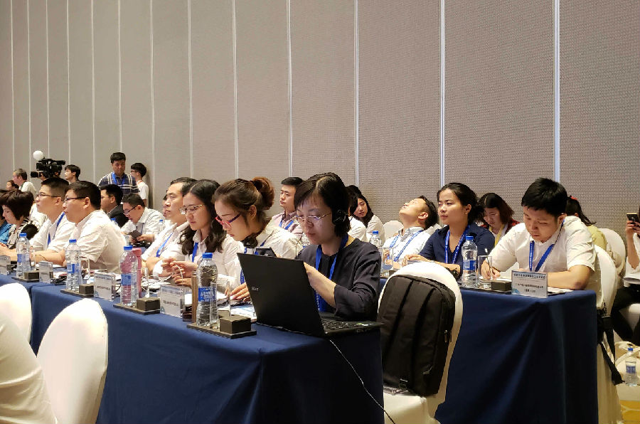 廣電計(jì)量環(huán)保技術(shù)專家(右一)出席會(huì)議與現(xiàn)場(chǎng)專家代表進(jìn)行交流