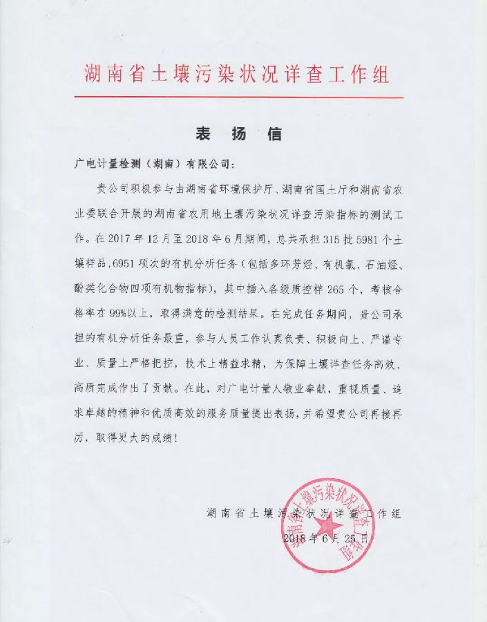 自2016年12月起,廣電計量先后6次通過了省部級嚴格考核,以全項目64項檢測標準全部通過的優異成績入選全國土壤污染狀況詳查首批檢測實驗室名錄。