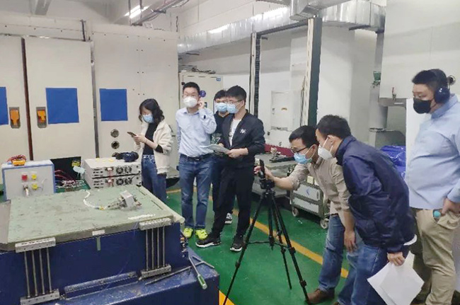 為保證遠(yuǎn)程目擊試驗(yàn)真實(shí)、可靠,審查組工程代表首先向申請(qǐng)人和廣電計(jì)量技術(shù)負(fù)責(zé)人宣貫了審查組的要求,明確了遠(yuǎn)程審查的開(kāi)展前提和實(shí)施原則,并由委任制造檢查代表在廣州試驗(yàn)現(xiàn)場(chǎng)完成了試驗(yàn)前制造檢查。本次遠(yuǎn)程目擊試驗(yàn)采取固定鏡頭和移動(dòng)鏡頭相配合的方式,保證試驗(yàn)現(xiàn)場(chǎng)實(shí)況的360°全覆蓋。試驗(yàn)條件準(zhǔn)備就緒后,審查組、申請(qǐng)人和廣電計(jì)量技術(shù)人員按照試驗(yàn)大綱,共同開(kāi)展了試驗(yàn)?zāi)繐魴z查,確認(rèn)測(cè)試數(shù)據(jù);并由審查組根據(jù)目擊檢查情況,向申請(qǐng)人反饋檢查結(jié)果,圓滿(mǎn)完成了檢查工作。