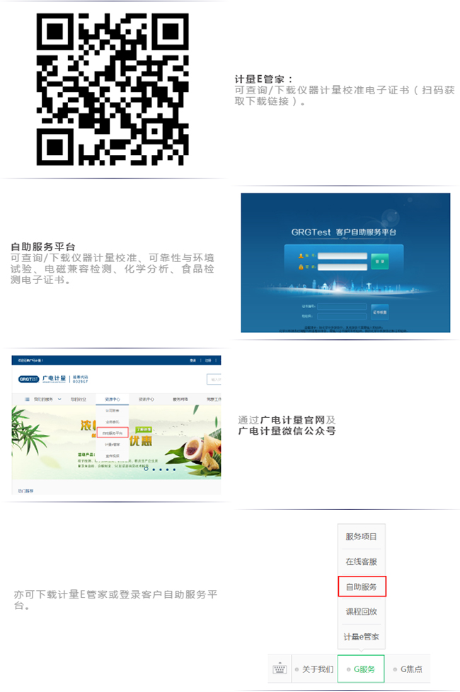 即日起廣電計(jì)量為客戶免費(fèi)提供標(biāo)準(zhǔn)版的儀器設(shè)備管理軟件“計(jì)量E管家”,同時(shí)為客戶提供自助服務(wù)平臺(tái)(http://120.197.59.40:8086)、公司官網(wǎng)(m.bjltxy.com.cn)、微信公眾號(hào)等多種電子證書查詢、下載渠道。
