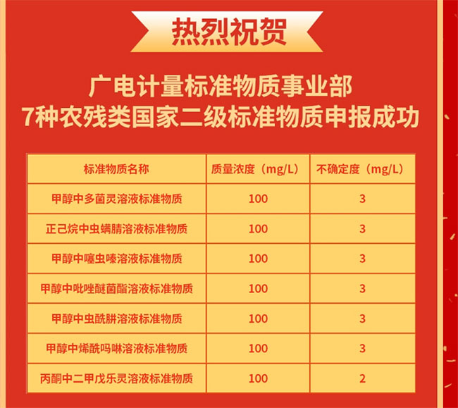 廣電計量成功申報7種農殘類國家二級標準物質