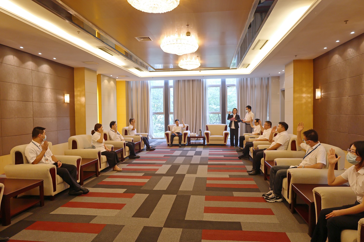 無錫市科協副主席王鎮,國際部部長許娟;新吳區科協主席郭中華;無錫廣電計量總經理儲程晨,副總經理羅平、龍陽、許策、陳舒文出席會議。