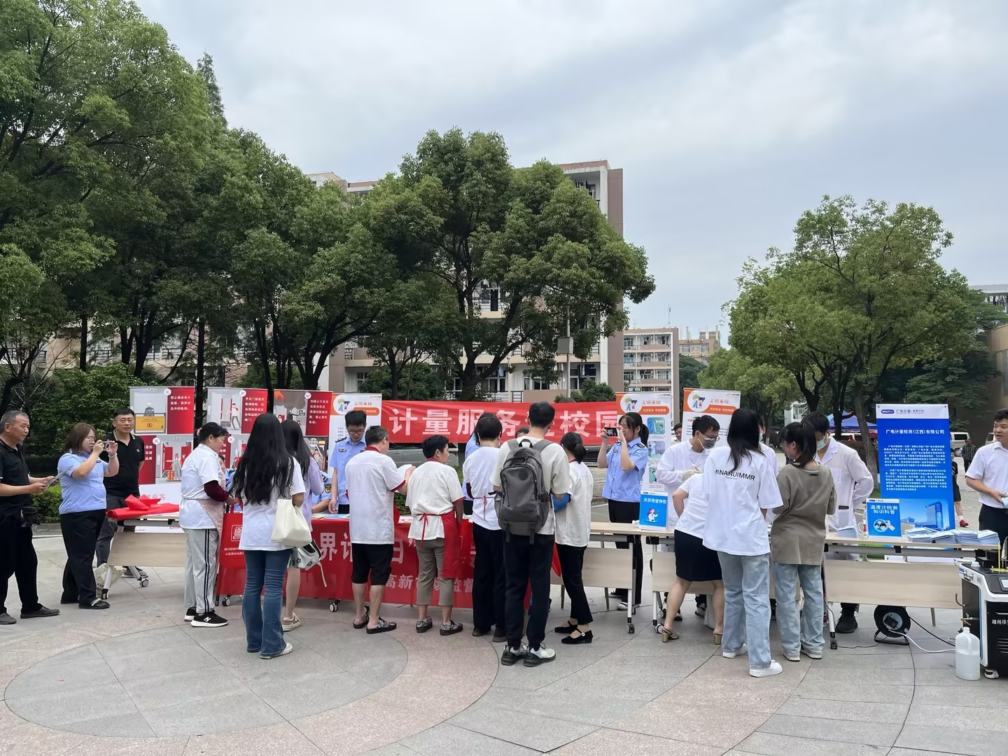 與此同時,南昌高新區“計量服務進校園”活動也在同步舉行。區市場監管局攜手江西廣電計量走進江西科技學院校園,向廣大學生和群眾科普計量知識,宣傳電子計價秤、民用三表、血壓計、出租汽車計價器等民生計量的知識及使用小技巧,并對他們有關計量知識提問進行現場解答。江西廣電計量技術人員還現場免費開展了溫度計檢測校準、蔬菜農藥殘留快檢等計量檢測服務,吸引了大批學生駐足圍觀。