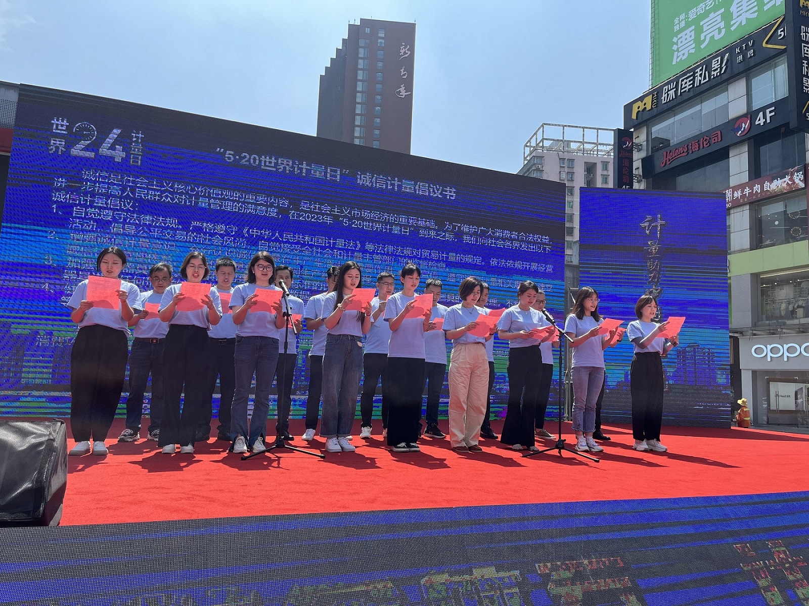 5月18日,2023年湖南省“5·20世界計量日”現場啟動儀式在長沙舉行。省市場監督管理局總工程師李丁、長沙市人民政府副秘書長盧興映、天心區委常委、副區長鄭州等出席啟動儀式。啟動會上,湖南廣電計量副總經理江賢志作為企業代表之一上臺作誠信計量承諾并宣讀倡議書,承諾做到誠信經營、秤準量足,努力為營造放心消費環境作出應有貢獻。