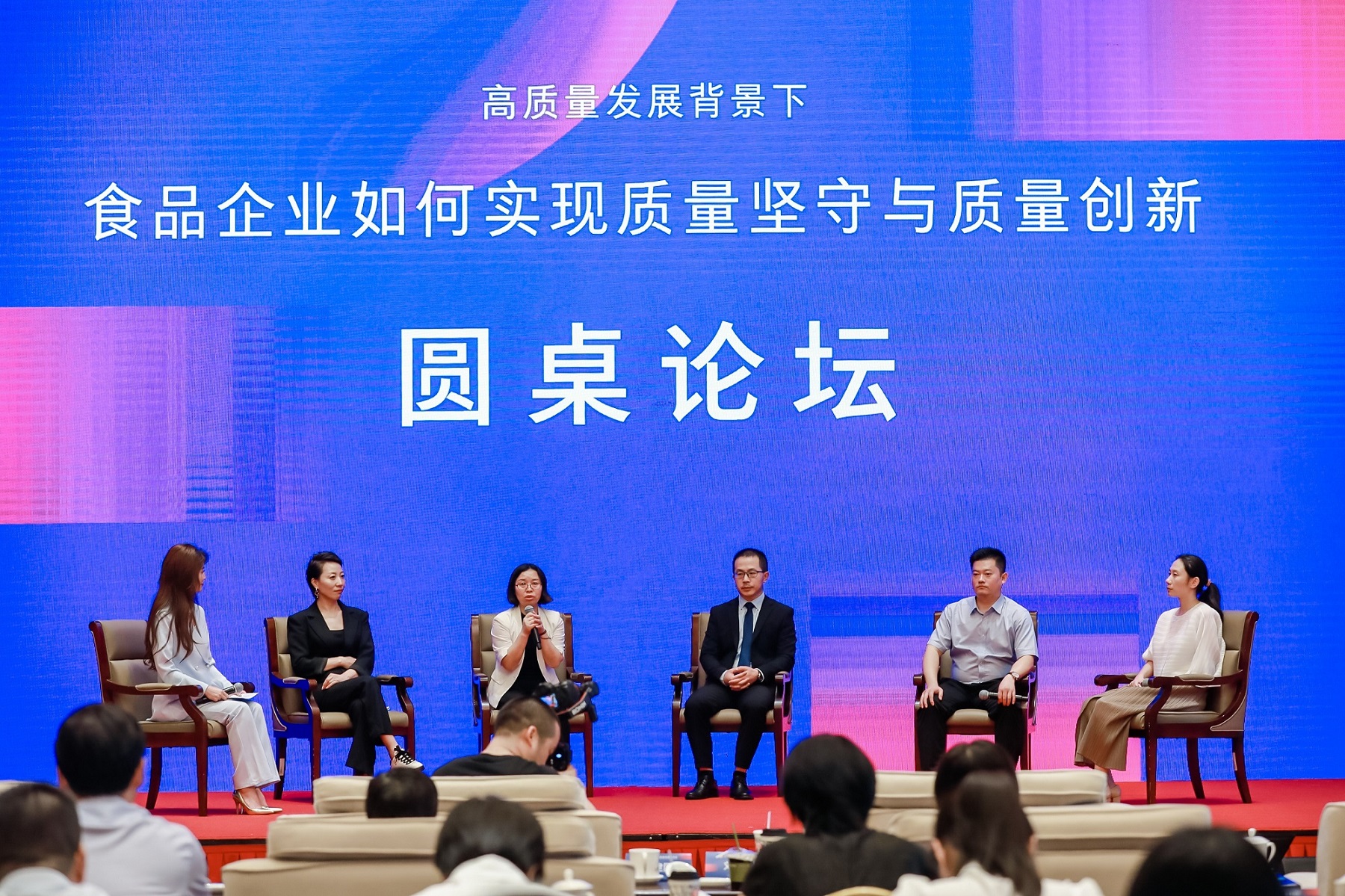 在圓桌論壇環節,廣電計量食品行業首席專家曹小彥與九毛九集團副總裁趙媛媛、華萊士副總裁單狄、新希望六和食品安全和質量管理部總經理王雅靖、安徽匯旺副總經理許周,圍繞“高質量發展背景下,食品企業如何實現質量堅守與質量創新”這一主題展開交流。