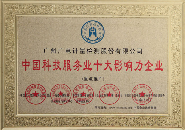 GRGT被評為“中國科技服務(wù)業(yè)十大影響力企業(yè)” 及 “中國計量檢測服務(wù)領(lǐng)軍品牌”
