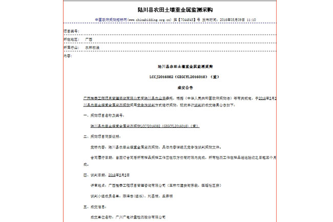 廣電計量陸續中標廣西重金屬檢測項目