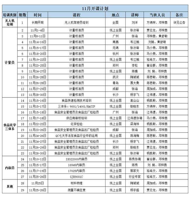 培訓預告 | 廣電計量咨詢培訓事業部11月培訓計劃