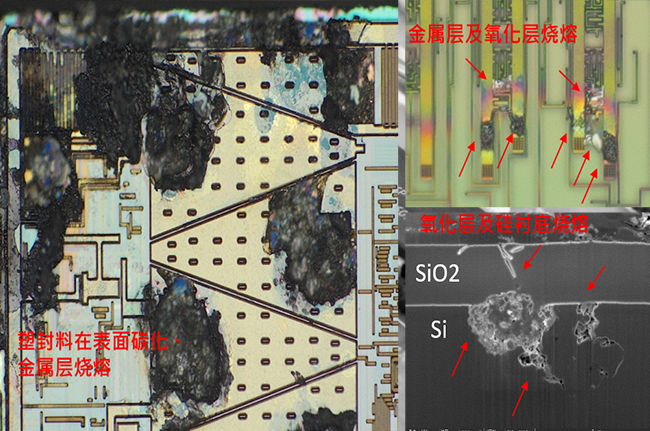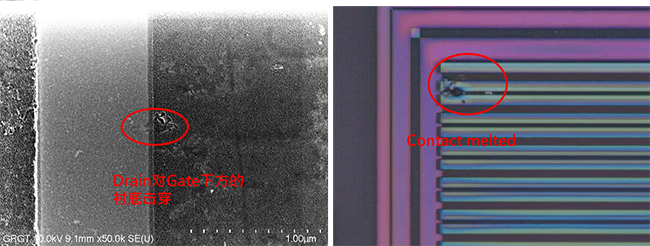 1. 針對失效IC進行電性及物理失效分析,確認其物理失效現象(失效點對應的電路位置及失效的物理深度),配合現場失效信息收集,初步推斷EOS/ESD失效模型;