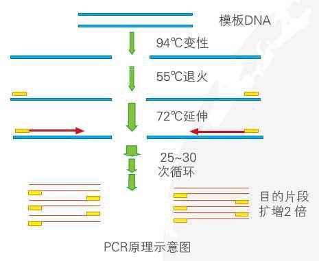 PCR是一種體外核酸擴(kuò)增技術(shù),其基本原理類似于DNA的天然復(fù)制過程,其特異性依賴于與靶值序列兩端互補(bǔ)的寡核苷酸引物。PCR由變性-退火-延伸三個基本反應(yīng)步驟構(gòu)成。