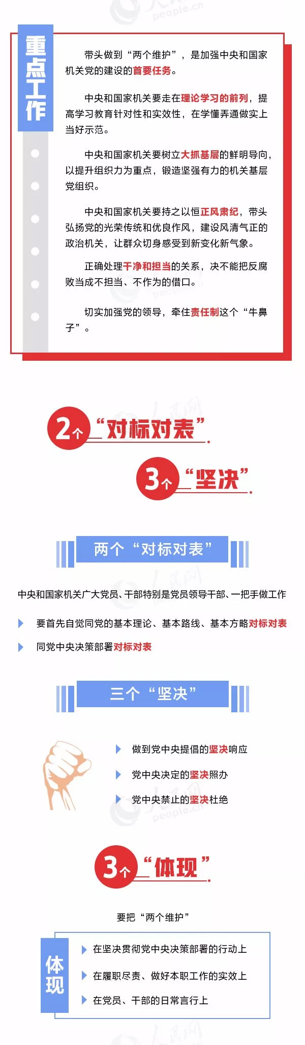 通知要求,各級黨組織要自覺對標習近平總書記重要指示精神,找差距、查問題、補短板,深化檢視剖析工作。中央和國家機關、省級機關和副省級城市機關要重點查找在做到“兩個維護”方面的差距,看是否做到黨中央提倡的堅決響應、黨中央決定的堅決照辦、黨中央禁止的堅決杜絕;查找在加強理論學習方面的差距,看是否在真學真懂真信真用習近平新時代中國特色社會主義思想上下功夫;查找在夯實基層基礎方面的差距,看是否存在機關黨建“燈下黑”的問題;查找在正風肅紀方面的差距,看是否堅決克服形式主義、官僚主義,是否堅持嚴字當頭,加強對黨員、干部全方位的管理監(jiān)督,一體推進不敢腐、不能腐、不想腐;查找在落實主體責任方面的差距,看是否牽住責任制這個“牛鼻子”,做到明責、履責、盡責。