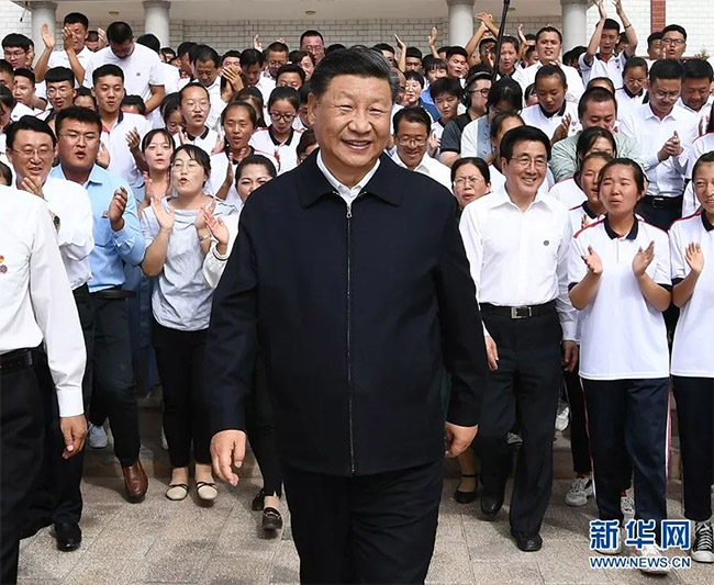 2019年8月20日下午,中共中央總書(shū)記、國(guó)家主席、中央軍委主席習(xí)近平考察甘肅省張掖市山丹培黎學(xué)校。