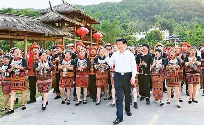 2022年4月10日至13日,中共中央總書(shū)記、國(guó)家主席、中央軍委主席習(xí)近平在海南考察。這是11日下午,習(xí)近平在五指山市水滿鄉(xiāng)毛納村向村民們揮手致意。 新華社記者 李學(xué)仁/攝