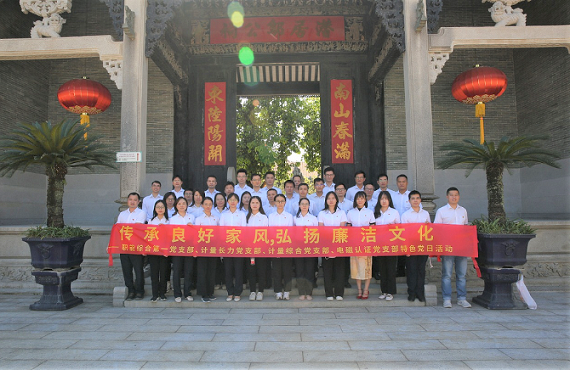 為進(jìn)一步加強(qiáng)支部黨員家教家風(fēng)建設(shè),以良好的家風(fēng)促作風(fēng)、強(qiáng)黨風(fēng),弘揚(yáng)廉潔文化,推動全面從嚴(yán)治黨向縱深發(fā)展。10月13日,廣電計量職能綜合第一黨支部、計量長力黨支部、計量綜合黨支部、電磁認(rèn)證黨支部組織共40余名黨員前往廣州市番禺區(qū)南村鎮(zhèn)余蔭山房家風(fēng)家訓(xùn)廉潔文化基地學(xué)習(xí),聯(lián)合開展主題為“傳承良好家風(fēng),弘揚(yáng)廉潔文化”的特色黨日活動,接受清正廉明家風(fēng)的熏陶與洗禮,進(jìn)一步涵養(yǎng)好家風(fēng)、弘揚(yáng)好家風(fēng)、踐行好家風(fēng)。